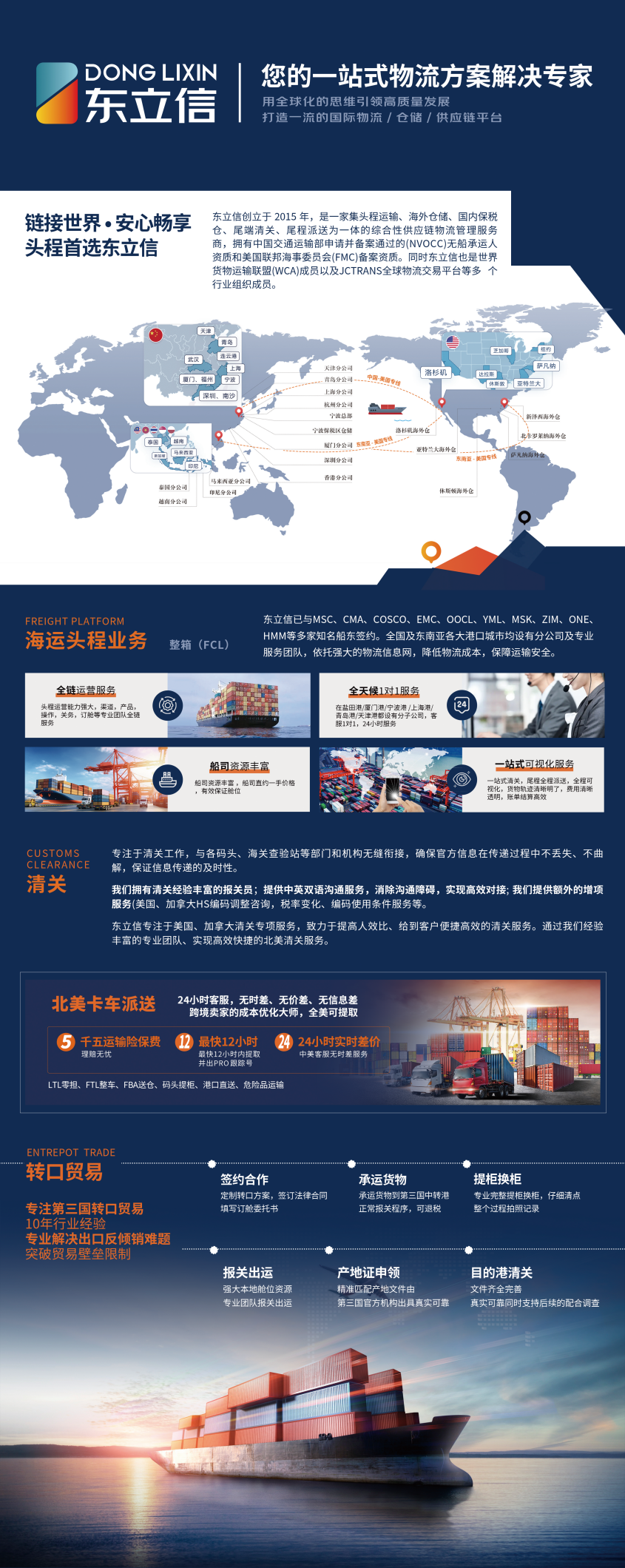 公司主要做大件类目,家具、家居类、户外运动等产品优势是整柜头程DDP,主要做北美地区总部位于宁波,深圳、厦门、青岛、上海、越南等多地均设立子公司。